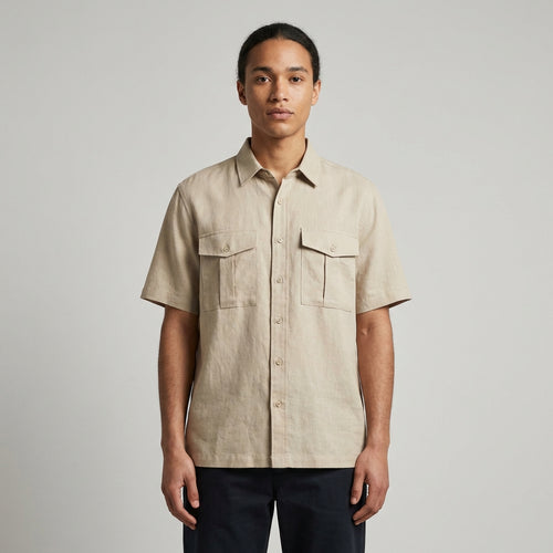 Lněná košile s krátkým rukávem a patkovými kapsami